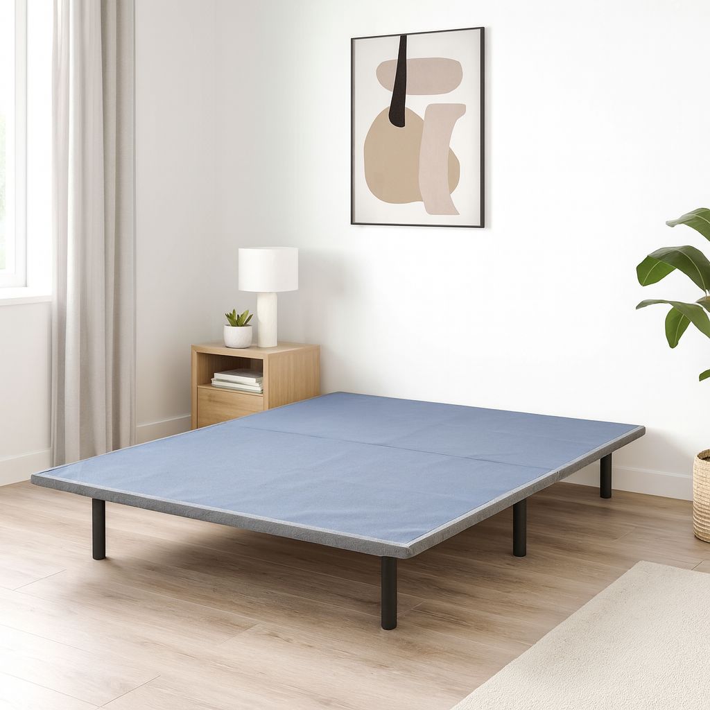 The Geli X-PLAT Bed Frame combines strength, style, and simplicity in one modern foundation. Built with a heavy-duty steel frame and commercial-grade plywood deck, it delivers lasting support up to 1,000 lbs. Its foldable, hinged design makes setup quick and tool-free, while adjustable 12” legs (8” + 4”) let you customize height for any space. Wrapped in a premium grey woven fabric, the X-PLAT adds a clean, modern look to any bedroom, ideal for pairing with your Geli Bed or other premium mattresses.